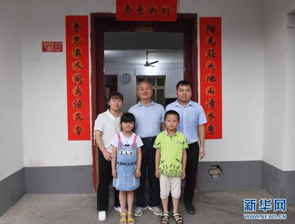 江西于都县梓山镇潭头村义士子女孙观发和家人在家门前合影(2019年5月20日摄)。。。。。。。。 新华社记者 周密 摄